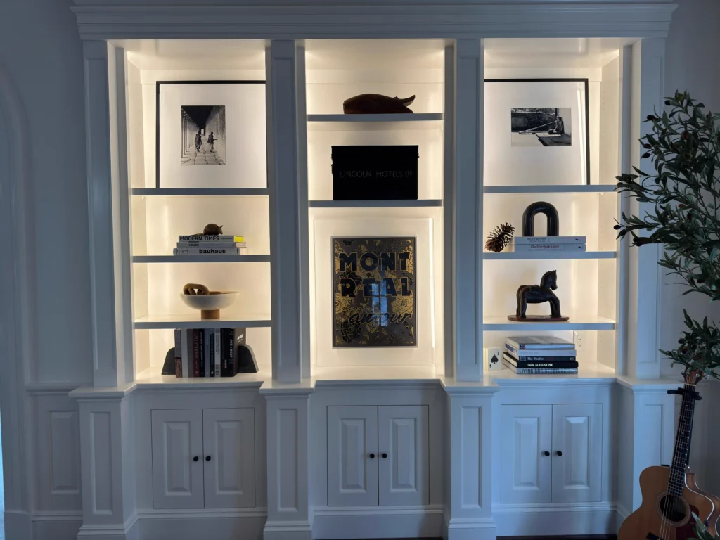 One of our favorite custom lighting options is linear cove lighting. This sleek, modern solution delivers soft, indirect illumination that dramatically improves display areas, architectural features, and entire rooms while remaining virtually invisible from normal viewing angles.