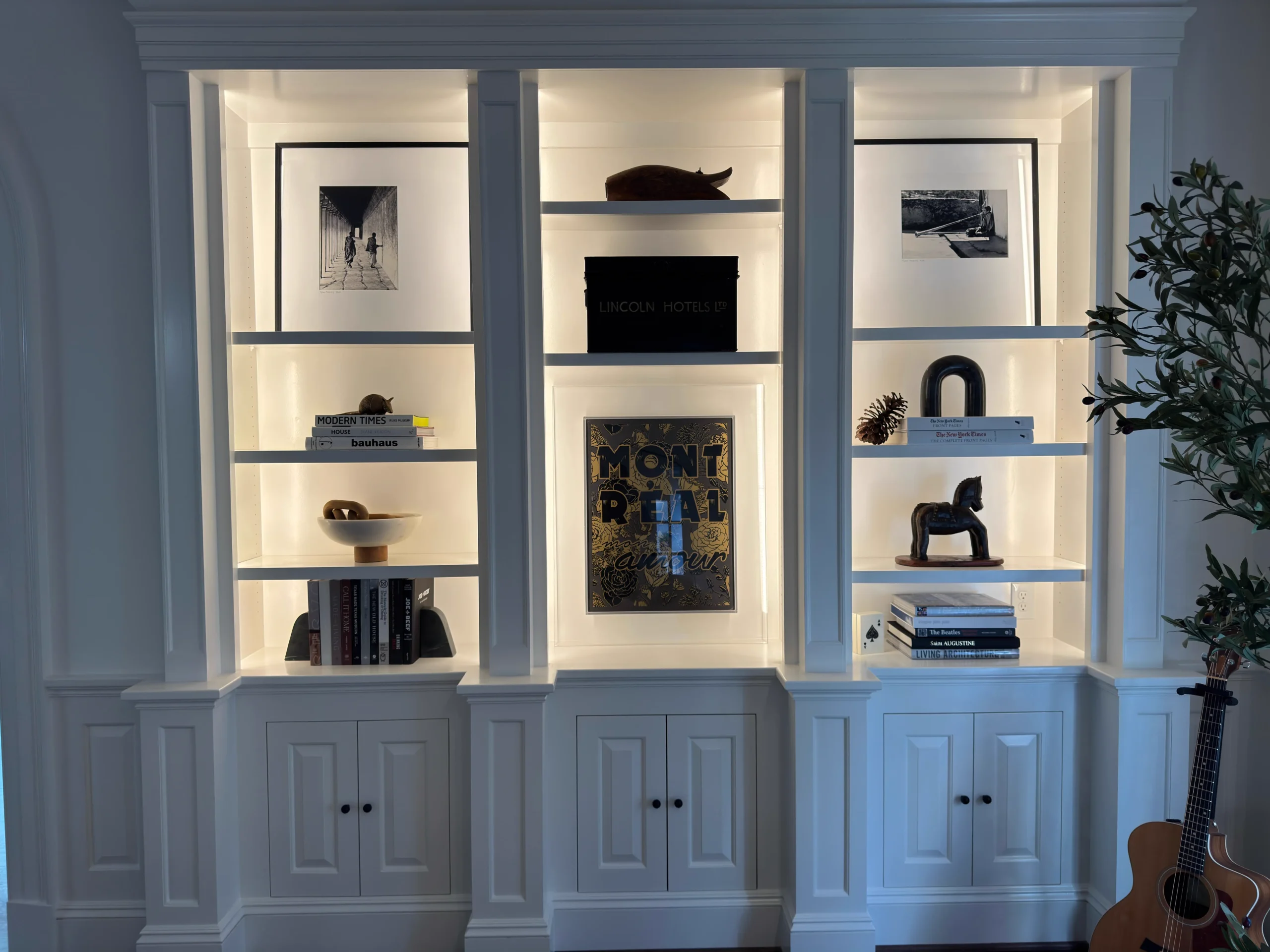 - Highlight artwork, shelving, or architectural details